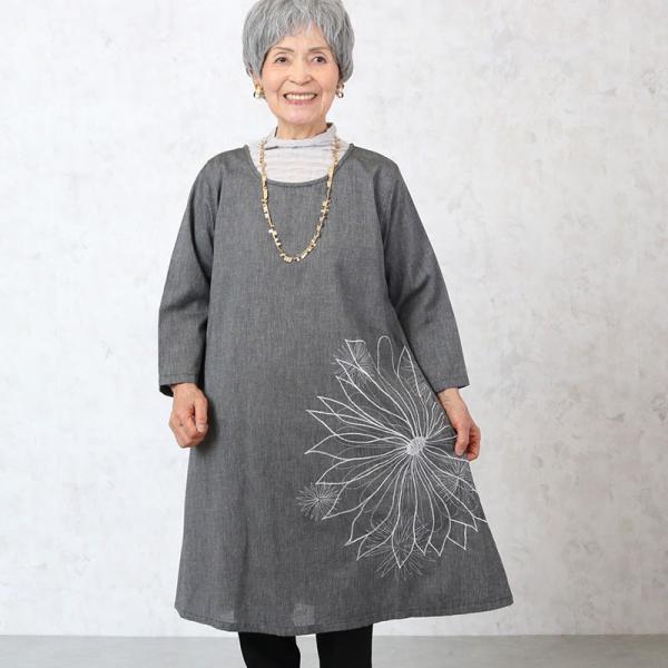 手描刺しゅう七分袖ワンピース シニアファッション 60代 70代 80代 婦人 レディース おばあちゃん服 お年寄り 高齢者 Cjs Ft5 Ra 6012 シニアファッションココわく 婦人服 紳士服 通販 Yahoo ショッピング