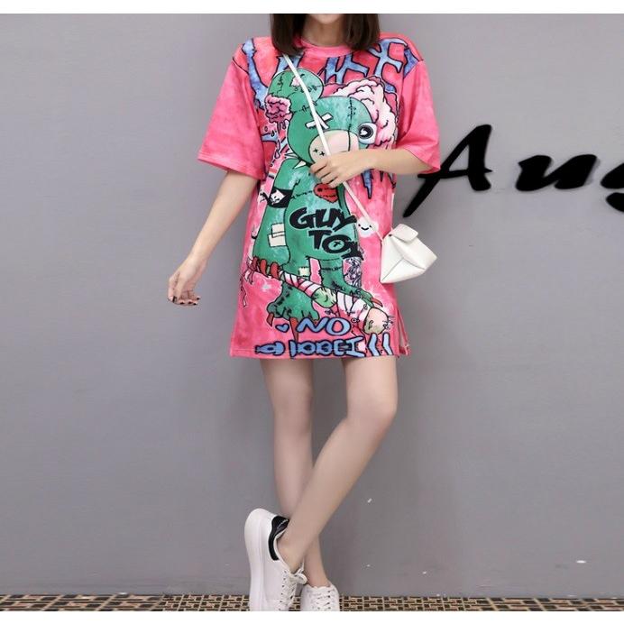 熊柄 ロングシャツ シャツワンピ ロンt メンヘラ ピンク ワンピース ひざ丈 原宿系 半袖 送料無料 G Shiawase Clothes 通販 Yahoo ショッピング
