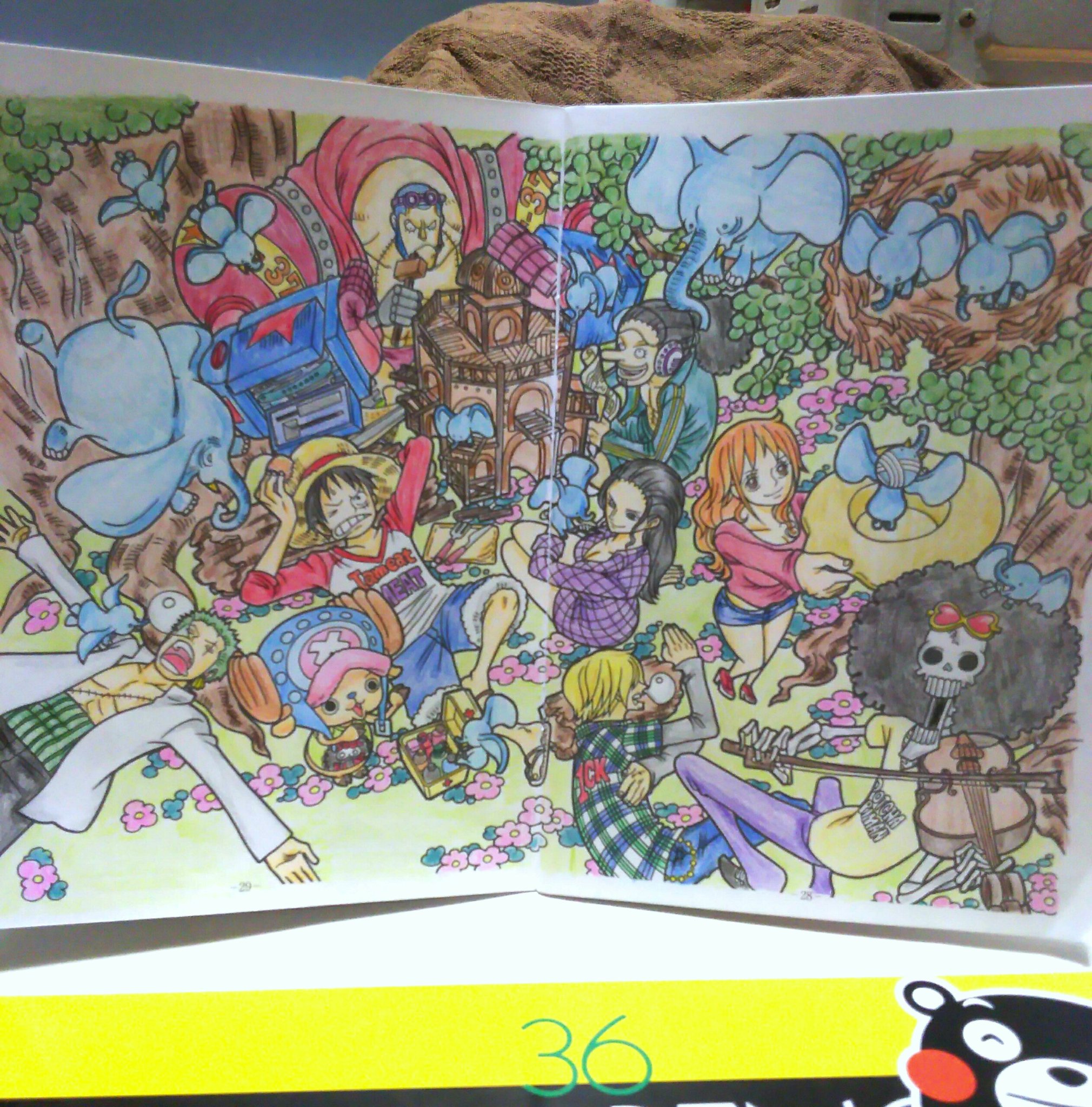 ひでみ 塗り絵専用 Twitter वर ワンピース完成 もうフランキーとウソップのとこらへんがワケわからんくて適当w 大人の塗り絵 T Co Qmyf6qpvc3 Twitter